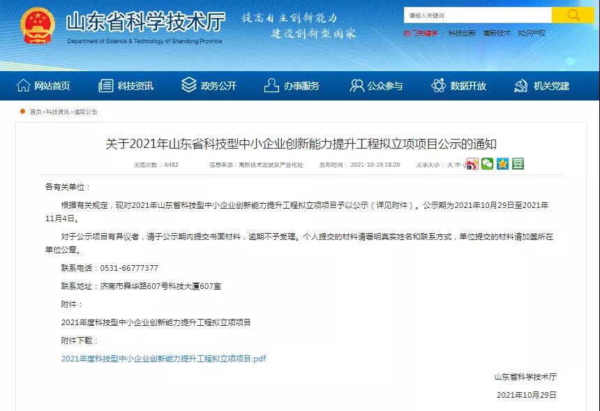 技術(shù)創(chuàng)新再添亮點(diǎn)!公司獲2021年山東省科技型中小企業(yè)創(chuàng)新能力提升工程立項(xiàng)項(xiàng)目公示